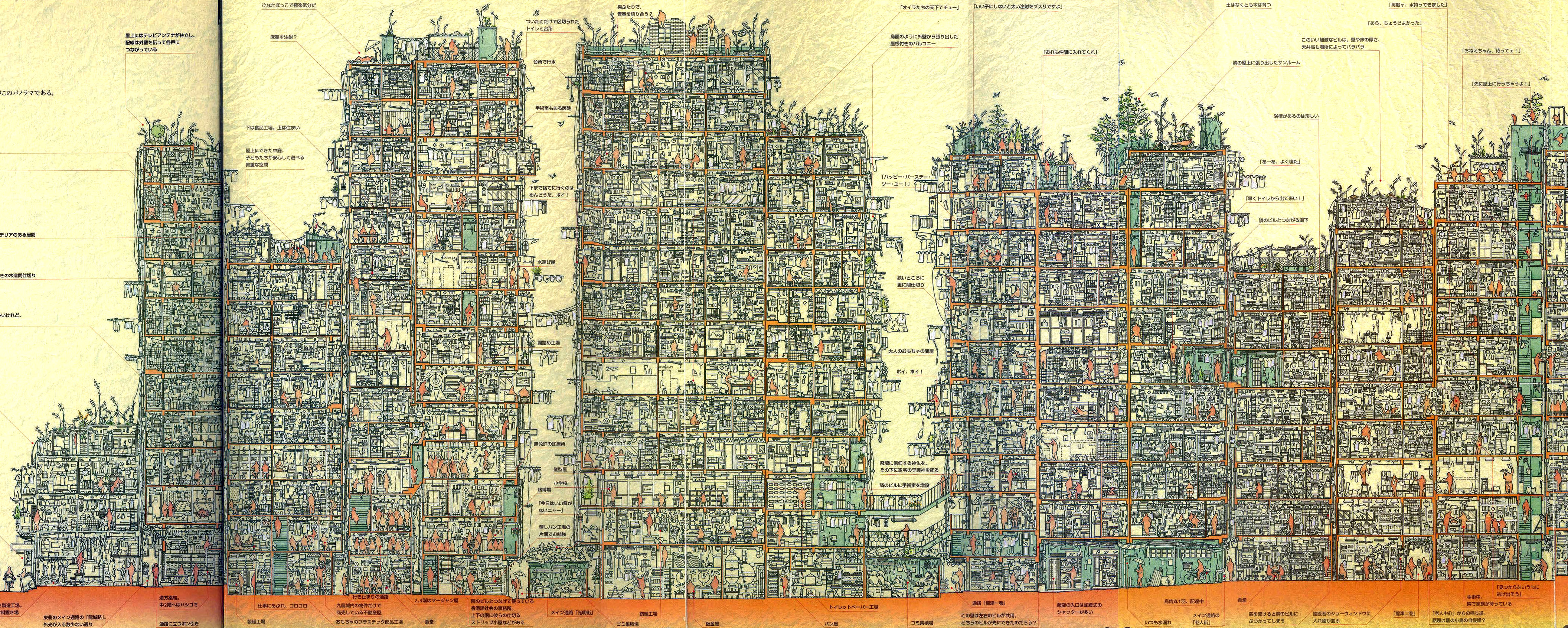 El South China Morning Post ha publicado recientemente el siguiente esquema para conmemorar el vigésimo aniversario de su demolición e, inevitablemente, la curiosidad urbanística se ha mezclado con viejas memorias de la infancia: las de aquellas fabulosas entregas de 13, Rue del Percebe con que el gigante Ibañez nos dio una inadvertida lección sobre el espacio social en un inmueble de vivienda colectiva. El póster del periódico muestra no sólo una sección hiperdetallada de la vida que pululaba por los intersticios de Kowloon, sino también su evolución histórica y otros datos relevantes.