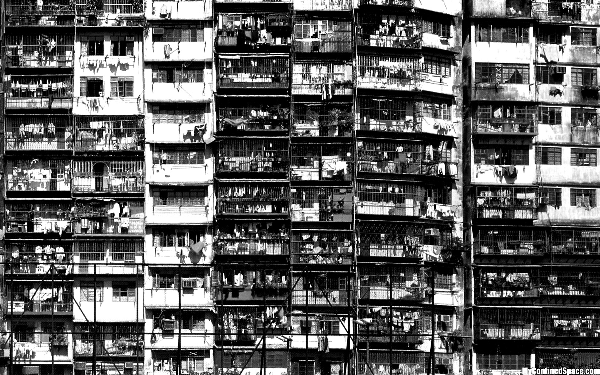 Con una densidad de casi 20.000 personas/Ha. (más de 6.000 viv/Ha. en nuestros estándares occidentales), el enclave era un lugar de superposición de todo tipo de realidades: desde redes informales de manufactura y comercio (podían encontrarse talleres y establecimientos en cualquier punto del conjunto), a soluciones autogestionadas de servicios colectivos (guarderías, etc.), a las mayores muestras de miseria y crimen, más allá del control de las autoridades de Hong Kong (el barrio era administrativamente parte de China, de modo que las autoridades no podían detener a los traficantes y otros delincuentes que vivían en el complejo).