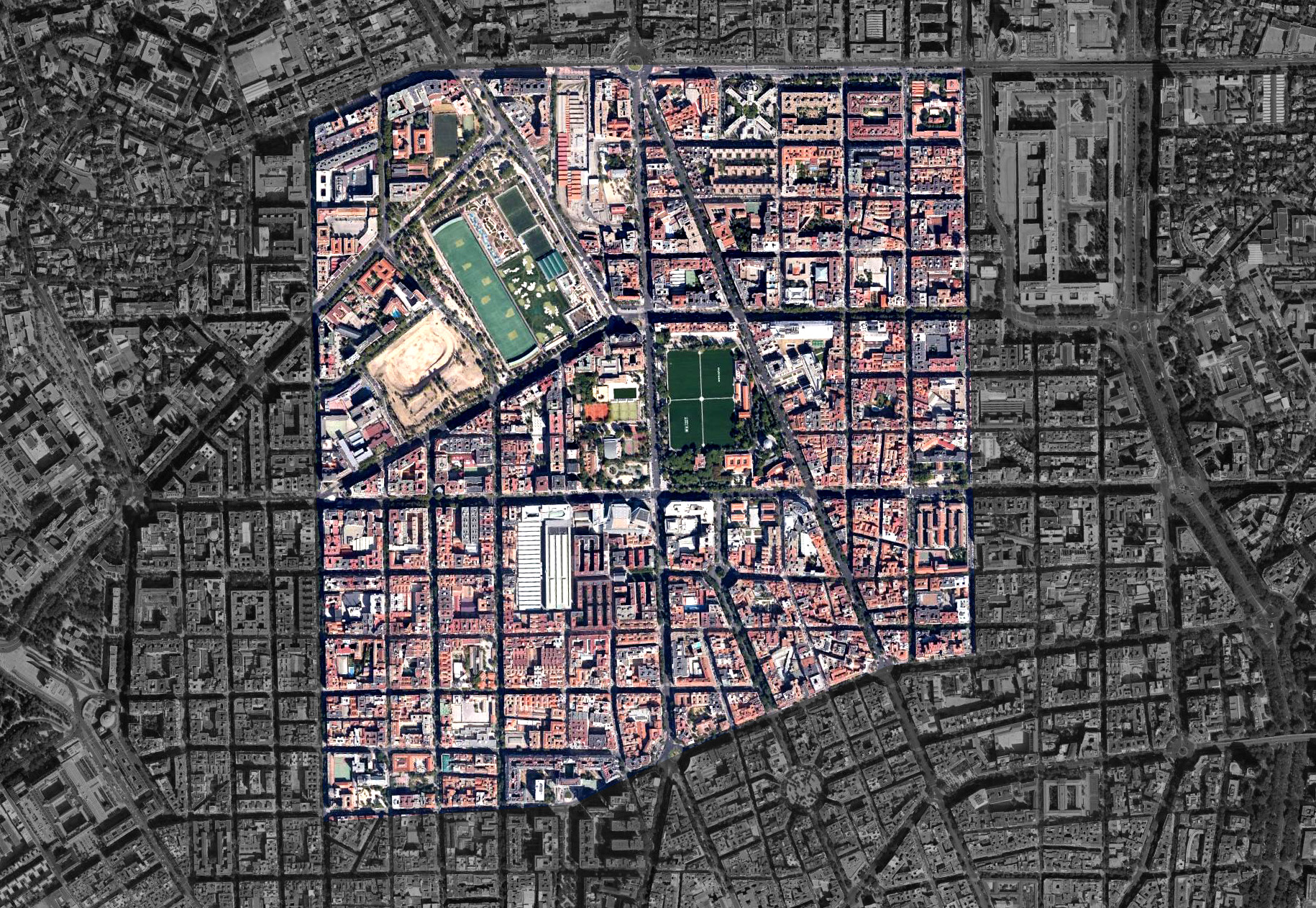 El pasado martes aprovechamos la primera sesión de nuestro taller para realizar una visita al ámbito de trabajo de este curso, en el entorno de los solares del Canal de Isabel II, las cocheras de Metro de Cuatro Caminos y el Parque Móvil en Madrid. Como sabéis el ámbito final de análisis e intervención dependerá de vuestra propia indagación y toma de decisiones en relación tanto al programa del proyecto a desarrollar en el Trabajo Fin de Máster como a sus relaciones con el entorno. Como espacio tentativo de estudios preliminares os sugiero la delimitación a continuación, que recoge un buen sector de la zona norte del Ensanche de Castro.